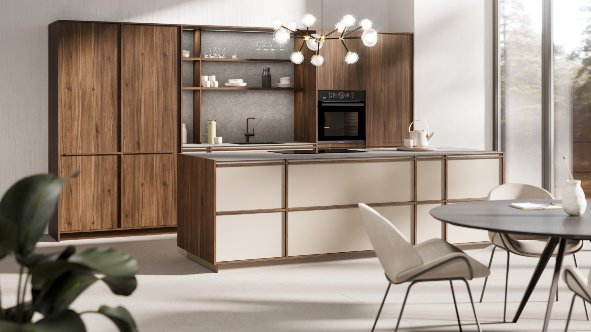 Vous pourrez équiper votre cuisine LEICHT avec des appareils électroménagers haut de gamme de la marque Gaggenau et des plans de travail de la marque Dekton ou Silestone.